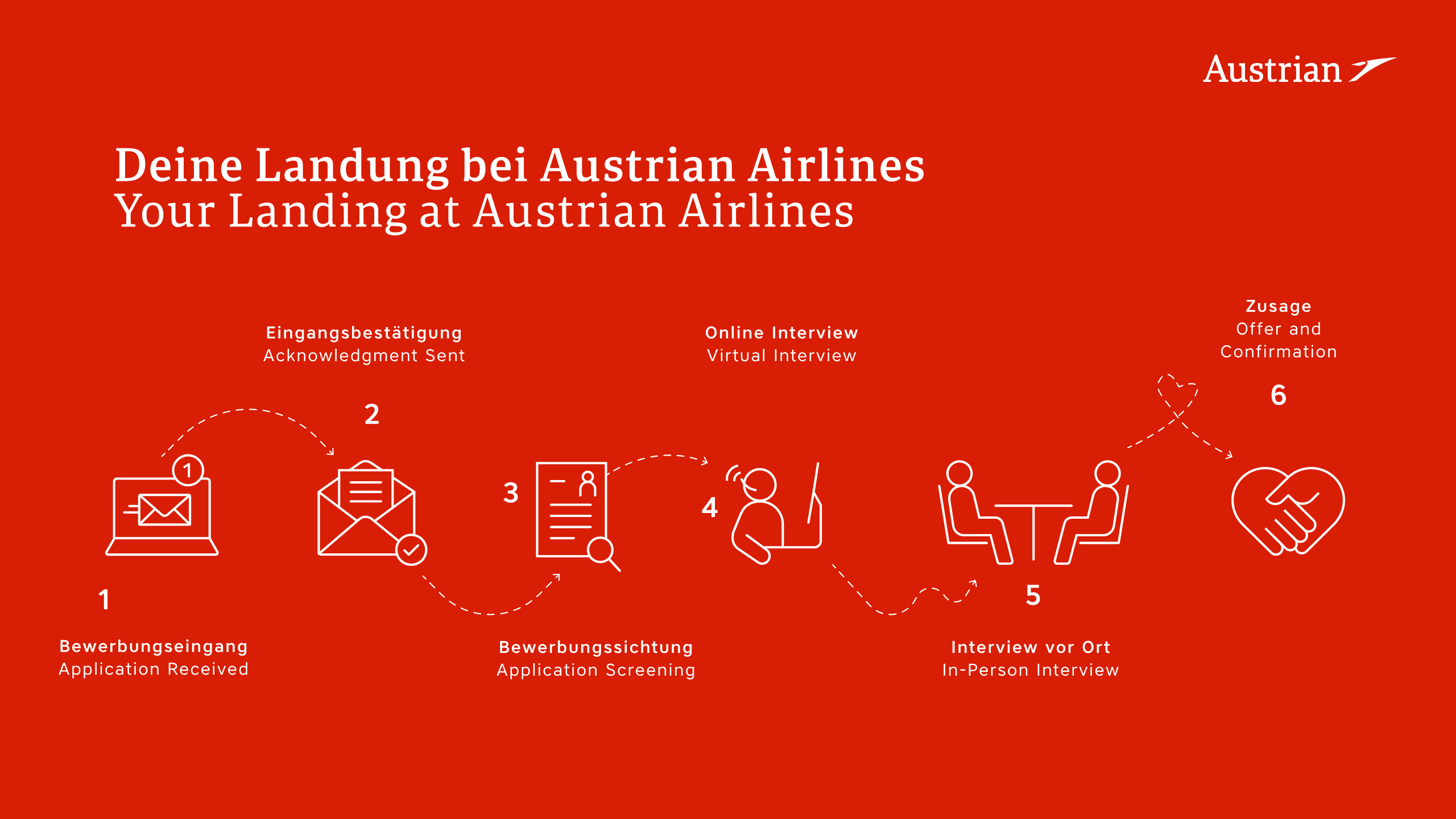 Entdecke eine Welt der unbegrenzten Möglichkeiten und verwirkliche deine beruflichen Träume bei Austrian Airlines. Bei uns findest du eine offene und herzliche Community, in der Internationalität und Aufgeschlossenheit eine große Rolle spielen. Herzlichkeit und Serviceorientierung stehen bei uns an erster Stelle - sowohl im Umgang mit unseren Kund:innen als auch bei unseren Mitarbeiter:innen. Ein beflügelndes Arbeitsumfeld und das Erleben unvergesslicher Momente stehen bei Austrian Airlines im Mittelpunkt. Uns liegt es besonders am Herzen, dass sich jede:r bei uns wohl fühlt und wir gemeinsam unvergessliche Erlebnisse und Erinnerungen schaffen. Let’s #CreateJourneysTogether www.austrianairlines.ag/jobscareer.aspx |
